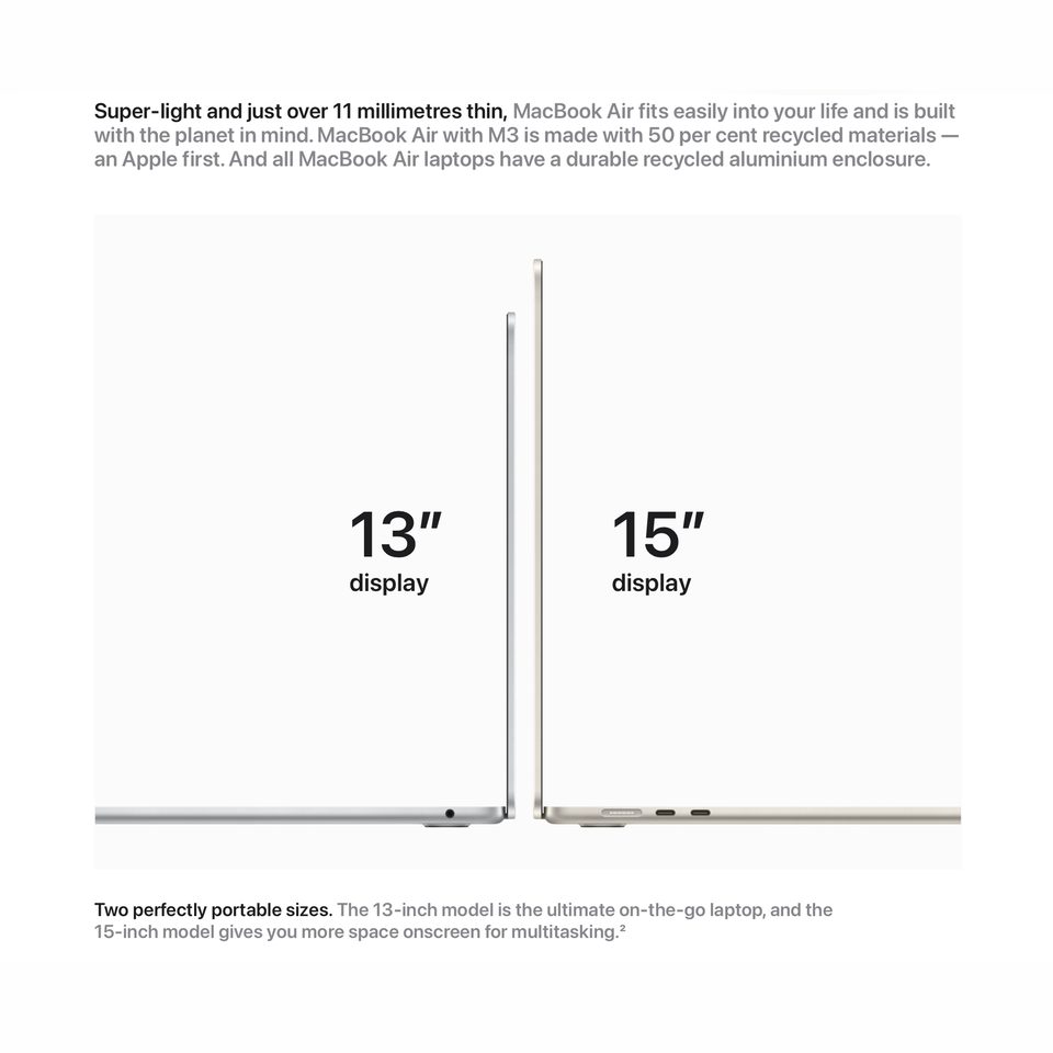 15-inch MacBook Air Apple M3 8-core CPU 10-core GPU 16gb Ram 512gb SSD Midnight
