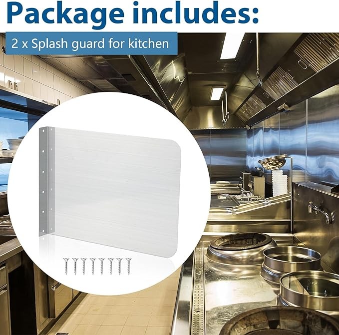 2 Pcs Stainless Steel Side Splash Guard for Sink, Wall Mount Guard with Screws, Commercial Restaurant Hand Sink and Compartment Prep Sink, Kitchen Sink Splash Protector Supply(17 x 12 Inch)