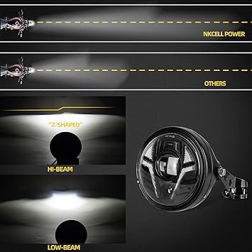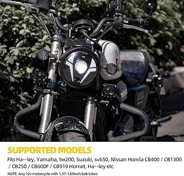 5.75 Inch LED Motorcycle Headlight with Housing &White DRL HiLo Headlight Fit 32-40mm Fork Tube For Motorcycle Compatible with Kawasaki Shadow for Suzuki Motorbikes Metric bikes Cruiser