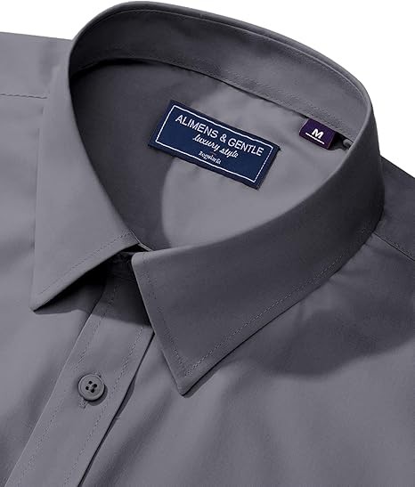 Alimens & Gentle Men's Dress Shirt Regular Fit Stretch Stain Shield Long Sleeve Solid Business Wedding Button Down Shirts