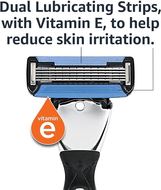 Amazon Basics 5-Blade MotionSphere Razor for Men with Dual Lubrication and Precision Trimmer, Handle & 16 Cartridges, Cartridges fit, Razor Handles only, 17 Piece Set, Black