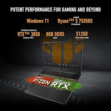 ASUS TUF Gaming A15 (2024) Gaming Laptop, 15.6” FHD 144Hz Display, NVIDIA® GeForce RTX™ 3050, AMD Ryzen™ 5 7535HS, 8GB DDR5, 512GB PCIe® Gen4 NVMe™ SSD, Wi-Fi 6, Windows 11, FA506NC-ES51