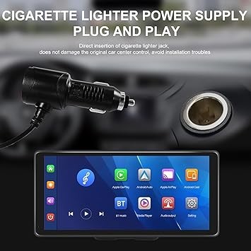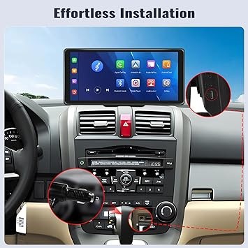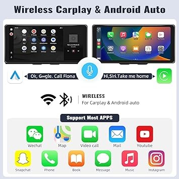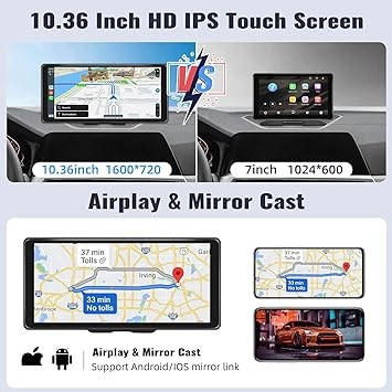 CAMECHO 10.36 Inch Portable Car Stereo Full HD Touchscreen CarPlay Screen with Wireless CarPlay Android Auto Bluetooth Hands-Free Backup Camera 64G Card Support Mirror Link, FM, GPS, Aux Input