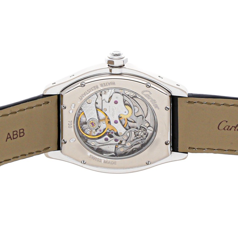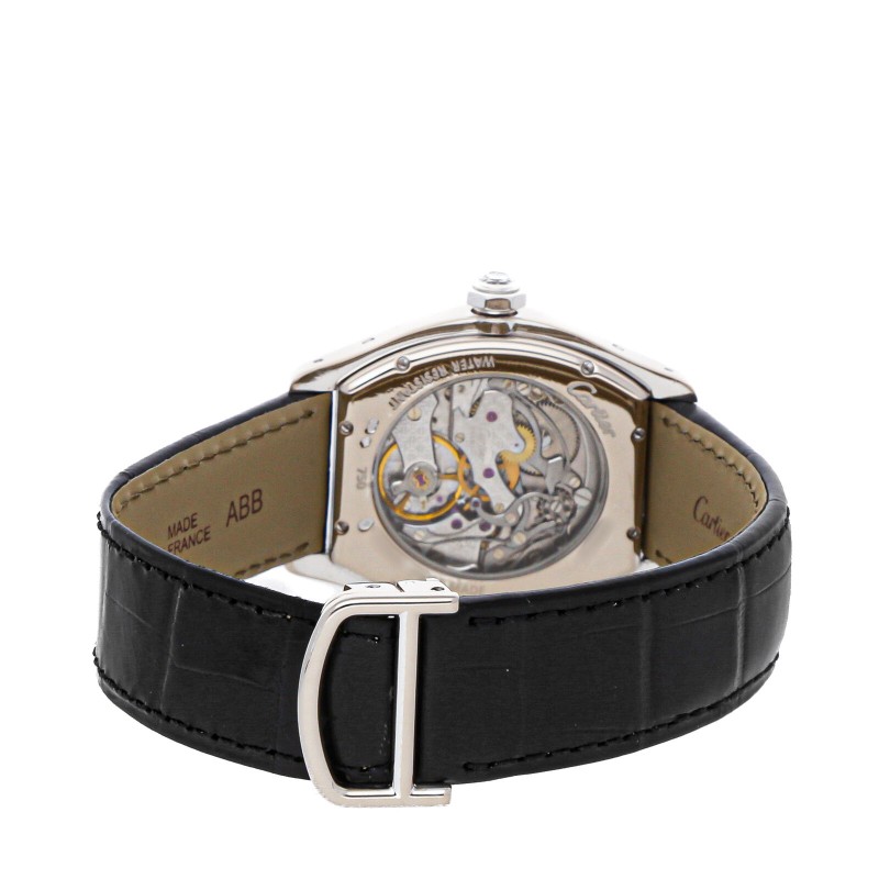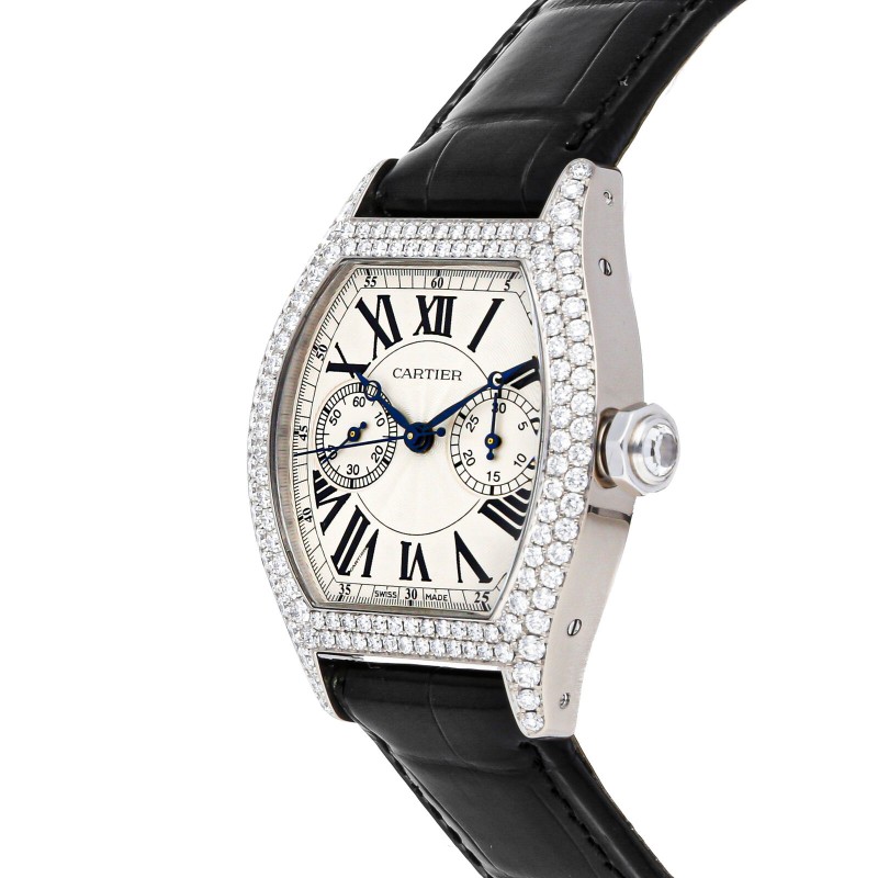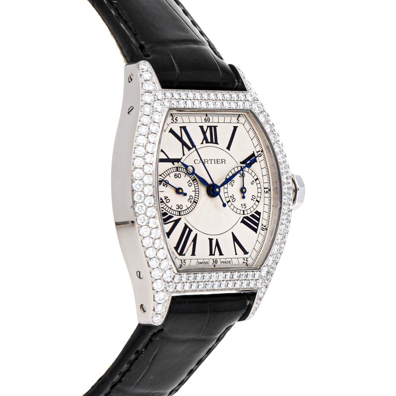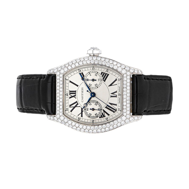 Cartier Tortue Monopoussoir Manual White Gold Diamond Mens Strap Watch WA506351