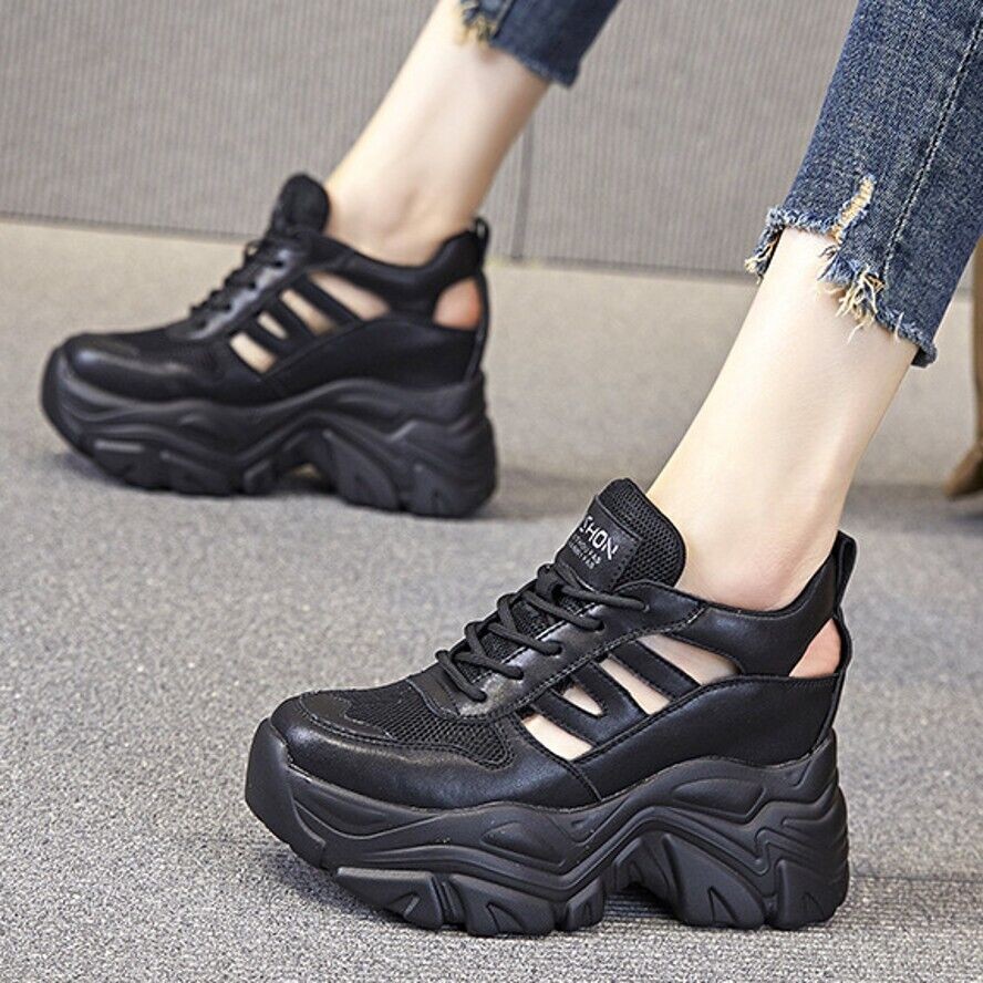 Womens Wedge Heel Black Slip on Shoes Summer Sandals Platform Open Toe Plus Size