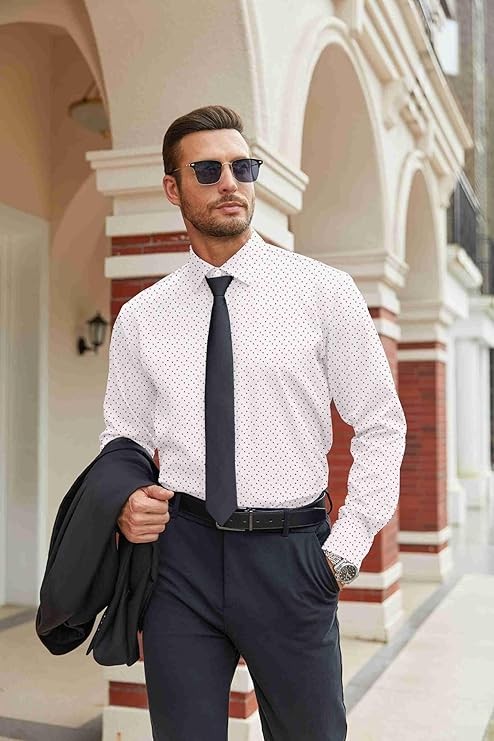 COOFANDY Mens Stretch Dress Shirts Long Sleeve Button Down Shirt Regular Fit Formal Business Shirts