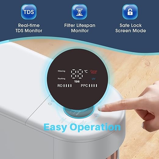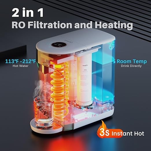 Countertop Instant Hot Water Dispenser, Reverse Osmosis Water Purification System with UV, 5:1 Pure to Drain, 4 Temperature Options, No Installation OM-ROF02