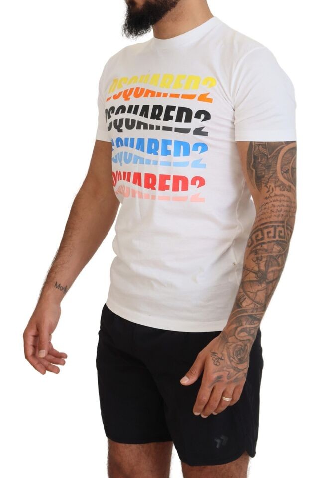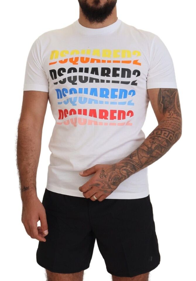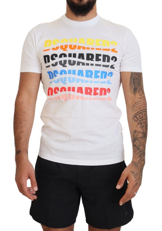 DSQUARED2 T-shirt White Logo Print Short Sleeves Crewneck Top IT48US38M 330usd