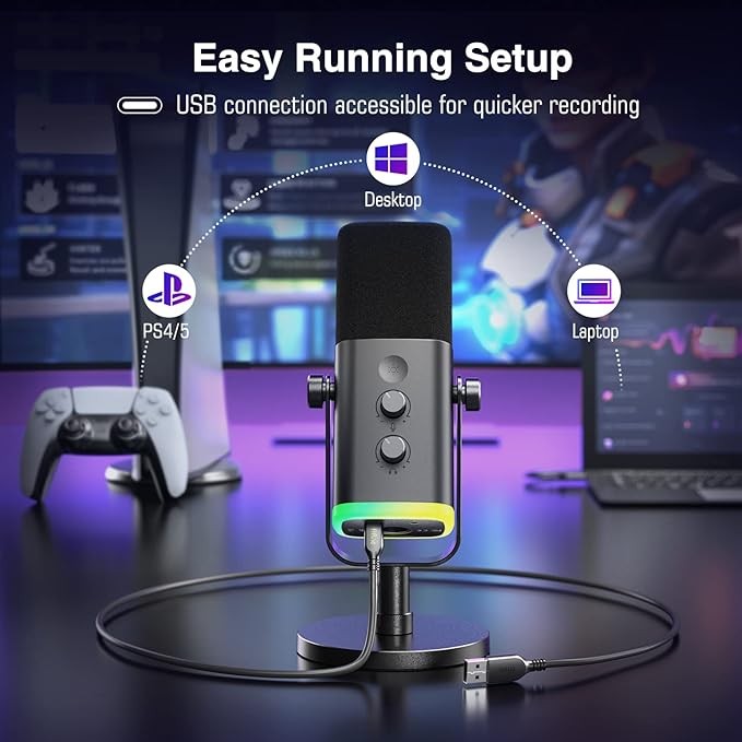 FIFINE XLR/USB Dynamic Microphone for Podcast Recording, PC Computer Gaming Streaming Mic with RGB Light, Mute Button, Headphones Jack, Desktop Stand, Vocal Mic for Singing YouTube-AmpliGame AM8