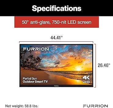 Furrion Aurora 50-Inch Partial-Sun 4K Outdoor Smart TV - Weatherproof Television w HDR10, Anti-Glare, 750-Nit LED Screen, Impact-Resistant Screen, External Antenna for Partially Sunny Outdoor Areas