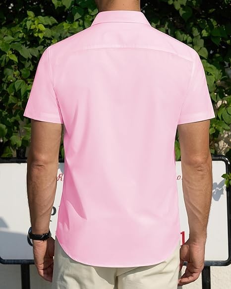 J.VER Men's Short Sleeve Dress Shirts Stretch Stain Shield Casual Button Down Shirts Solid Formal Shirt