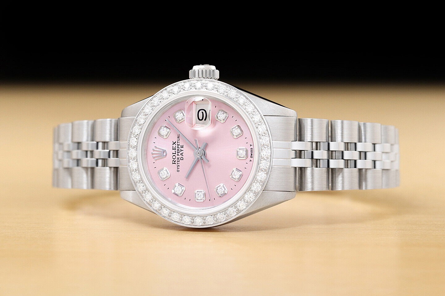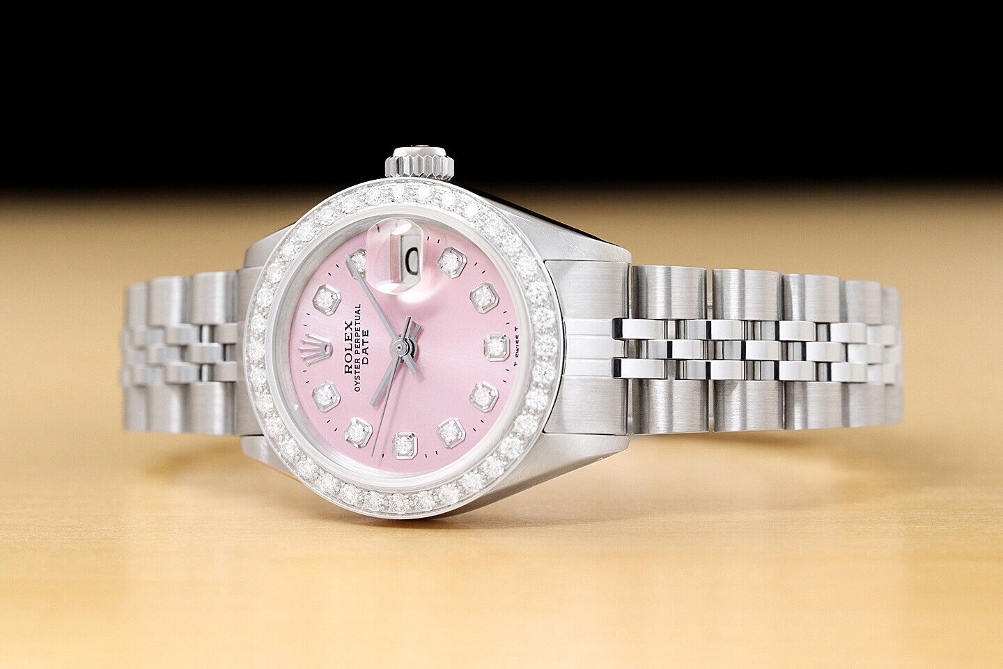 LADIES ROLEX DATE PINK DIAMOND DIAL 18K WHITE GOLD & STAINLESS STEEL WATCH