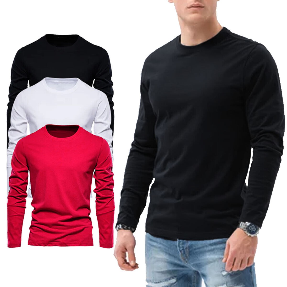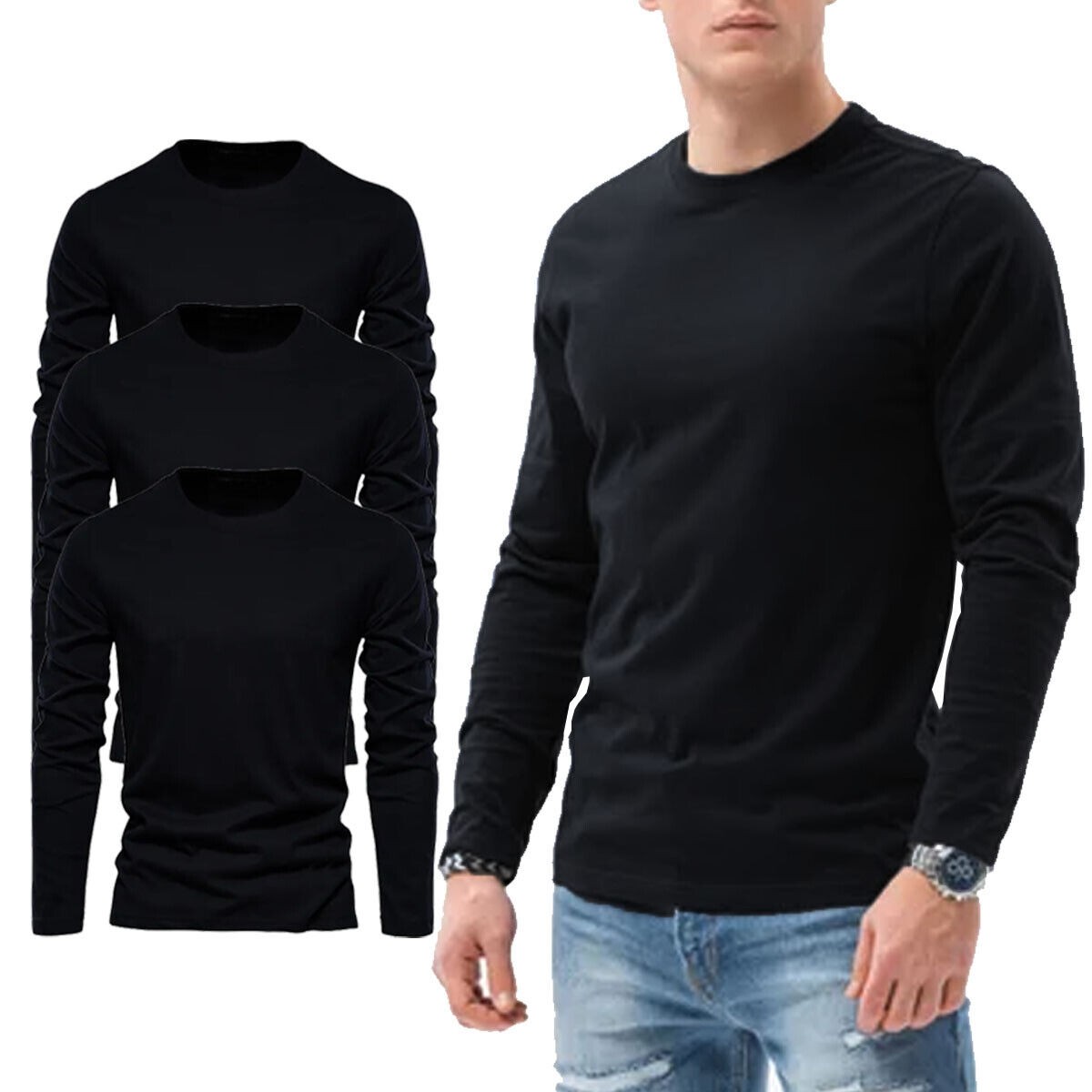 Mens Long Sleeve T shirt Plain Casual Work Pack Of 34 Premium Lot Tee Top
