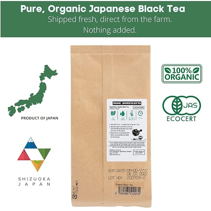 Ocha & Co. Organic Black Tea – Loose Leaf Japanese Tea – Benifuuki Tea Cultivar with Zero Bitterness – Smooth, Mild & Fragrant Premium Tea, 100g/3.5oz