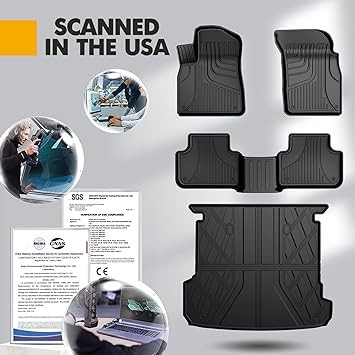 Original 2018-2024 Q7SQ7 Floor Mats and Cargo Liner for Audi Q7 All Model - Custom Fit Audi Q7 1st & 2nd Row TPE Floor Liner & Trunk Mat - 100% Protection - All Weather Car Mats for Audi Q7 2018-2024