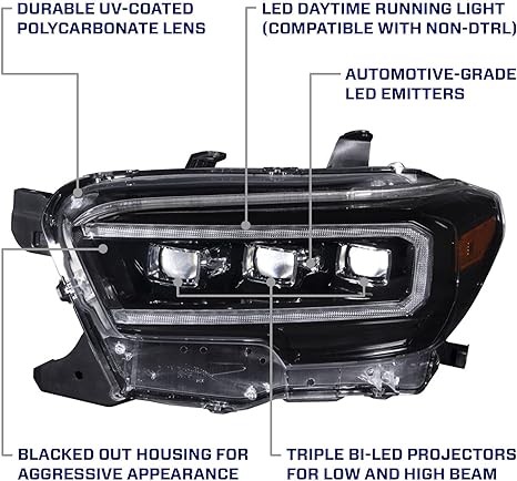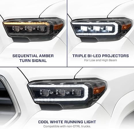 Sequential LED Headlights with White DRL compatible with Toyota, Tacoma 2016-2023 (pair)
