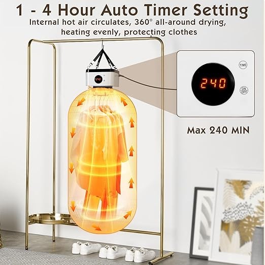 SKEPPY Portable Clothes Dryer, 3 in 1 Electric Dryer with Dryer Bag, 700W Mini Dryer with Timing Function Equipped, Boot Dryer & Bed Warmer, Travel Clothes Dryer for Apartment, RV, Dorm