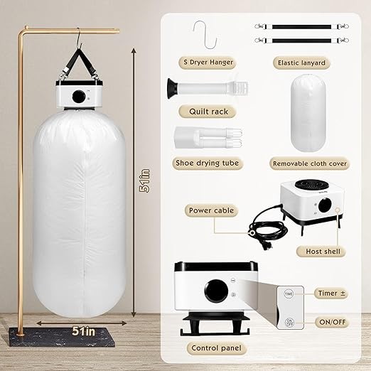Futon Dryer, Portable Blanket Warmer, Remote Control, PTC Heater with 9 Time Settings & 8 Heat Gears, ABS Flame Retardant Material & Over-heat Protection, Dual Nozzle For Bed Warmers, Shoe Dryer
