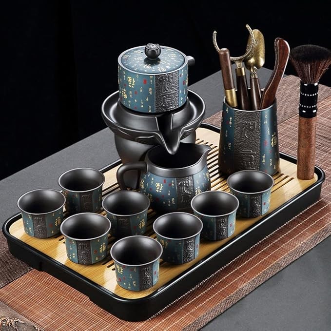 Tea Set Chinese Tea Set teapot Set gongfu Tea Set Tea Pot Set Service Automatic Stone-Mill Design Handmade Ceramics Tea Pot 8 Cups Kung Fu Tea Ceremony Home Office Decor