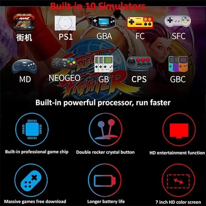 TLCRETE X12plus ポータブルゲーム機7インチ画面減圧携帯型ゲーム機MP4 MP5プレーヤー 16gb メモリ 内蔵10000種類ゲームPSPゲーム機