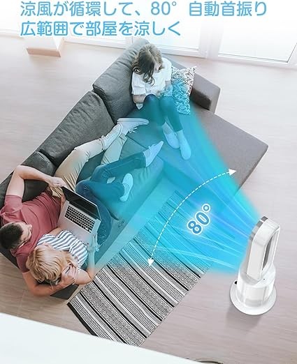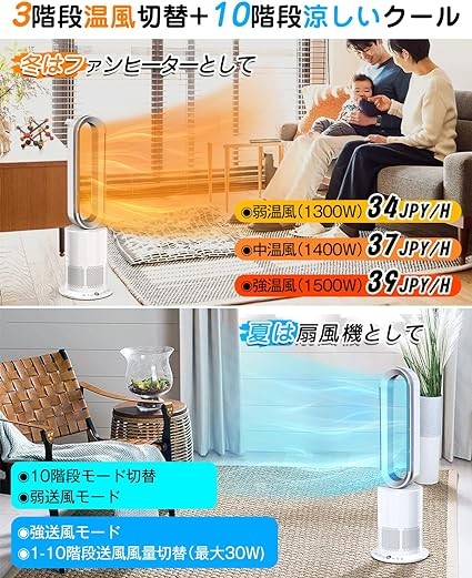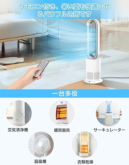 Wingless Fan, Tower Fan, Hot Air, Cold Air, No Blades, Can be Used All Year Round [Plasma Ion Generation, Air Purification] Air Circulation, Air Conditioning, 2 Seconds Blower, Power Saving, 10 Levels