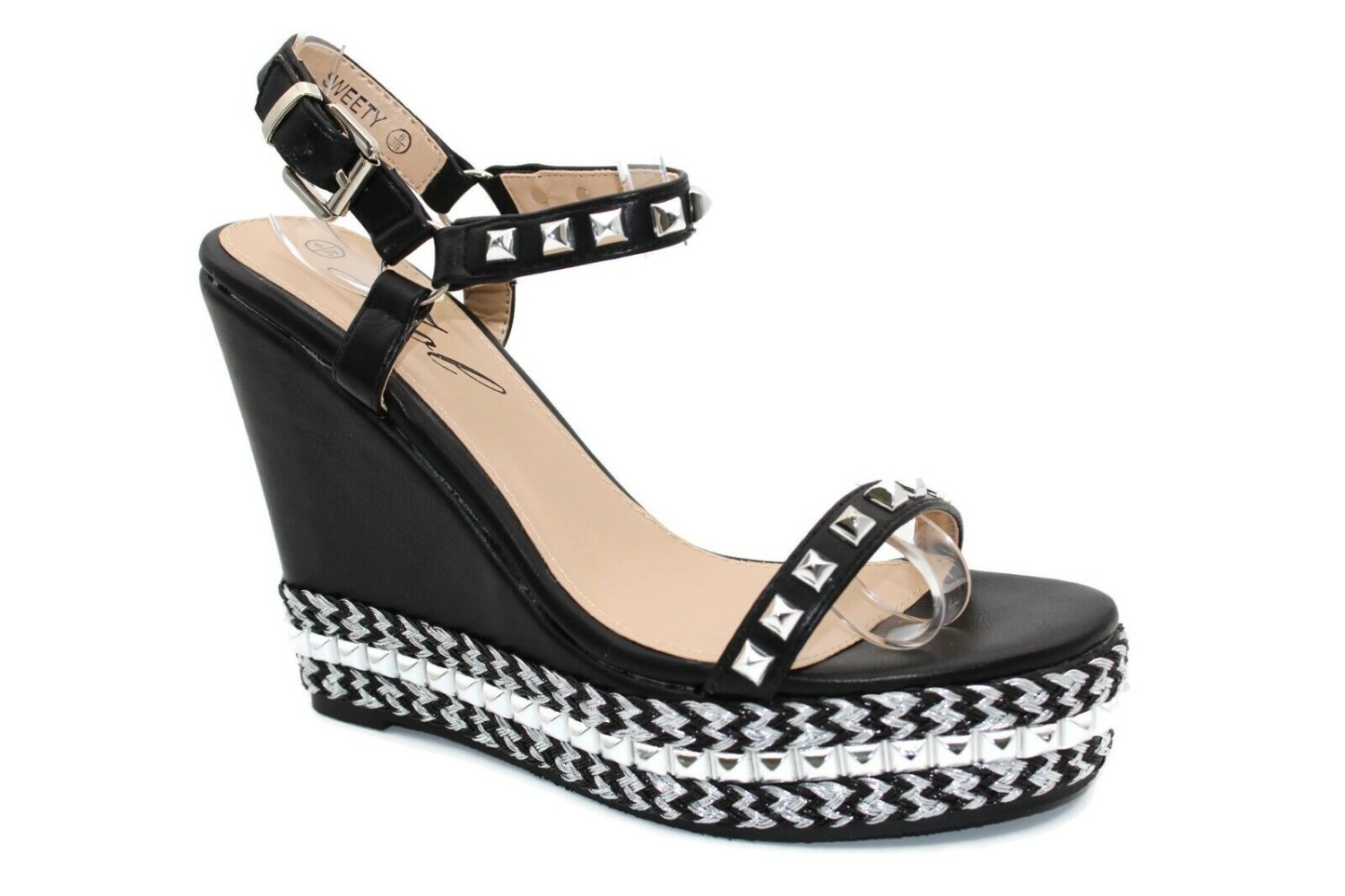Womens Wedge Heel Black Slip on Shoes Summer Sandals Platform Open Toe Plus Size
