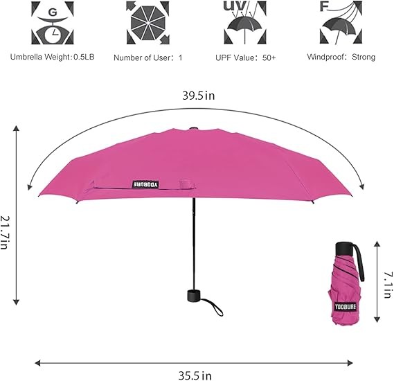 Yoobure Small Mini Umbrella with Case Light Compact Design Perfect for Travel Lightweight Portable Parasol Outdoor Sun&Rain Umbrellas
