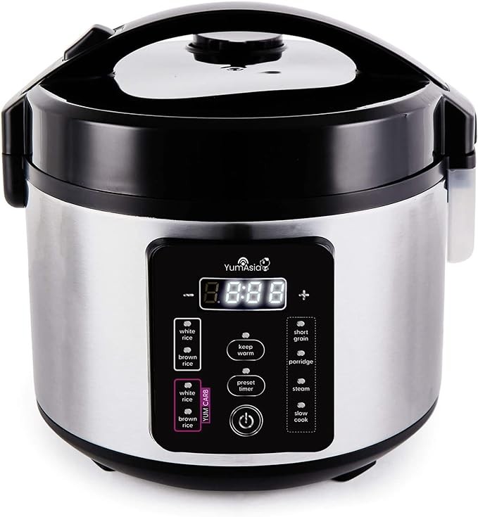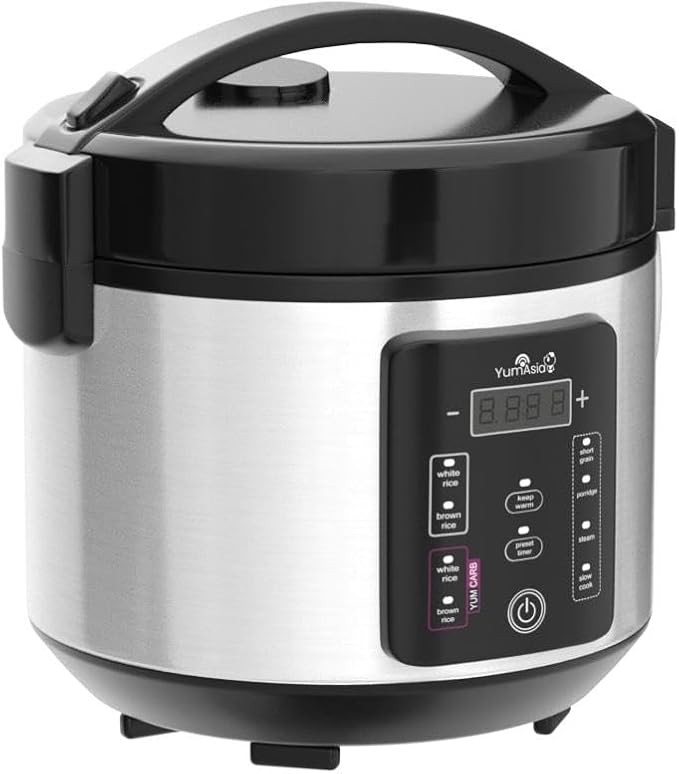 Yum Asia Kumo YumCarb Rice Cooker with Ceramic Bowl and Advanced Fuzzy Logic, (5.5 Cups, 1 Litre), 5 Rice Cooking Functions, 3 Multicooker Functions, 110V US Power (Light Stainless Steel)
